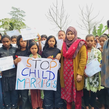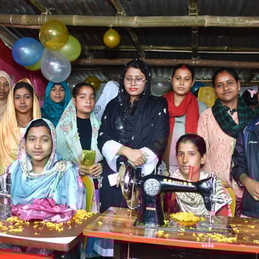 Women empowerment, child protection, prevention of child marriage, girls’ education, women skill development, legal and social support to survivors, community awareness, and climate action.