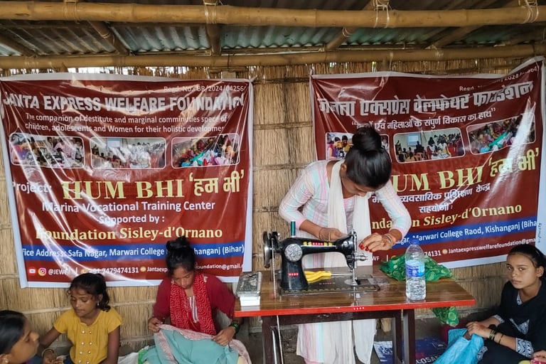 At this point, Janta Express Welfare Foundation did not step away. She was given sewing training. In the beginning, everything felt difficult—handling the machine, learning the work, staying consistent—but she did not give up. Slowly, she learned. Along with this, she was made aware of her rights, her independence, and her ability to make her own decisions. She was connected with government schemes, which helped her buy a sewing machine and gradually start her work.